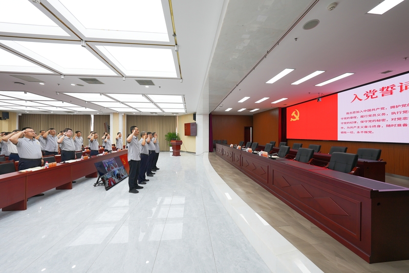 活动中,全体党员面对鲜红的党旗,高举右拳,在党委书记、总经理刘国柱的带领下重温入党誓词:“我志愿加入中国共产党,拥护党的纲领,遵守党的章程……随时准备为党和人民牺牲一切,永不叛党。”铿锵有力的誓言响彻会场,字字千钧,句句入心。80个字的入党誓词,是每名党员奋斗的“精神源泉”,是大家不变的“入党初心”,表达了对党的无限忠诚和崇高敬意。