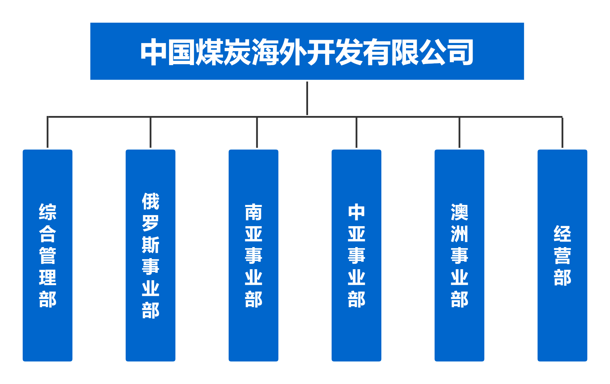 公司设置管理职能部室1个,为综合管理部;业务职能部室5个,为俄罗斯事业部、南亚事业部、中亚事业部、澳洲事业部、经营部。
