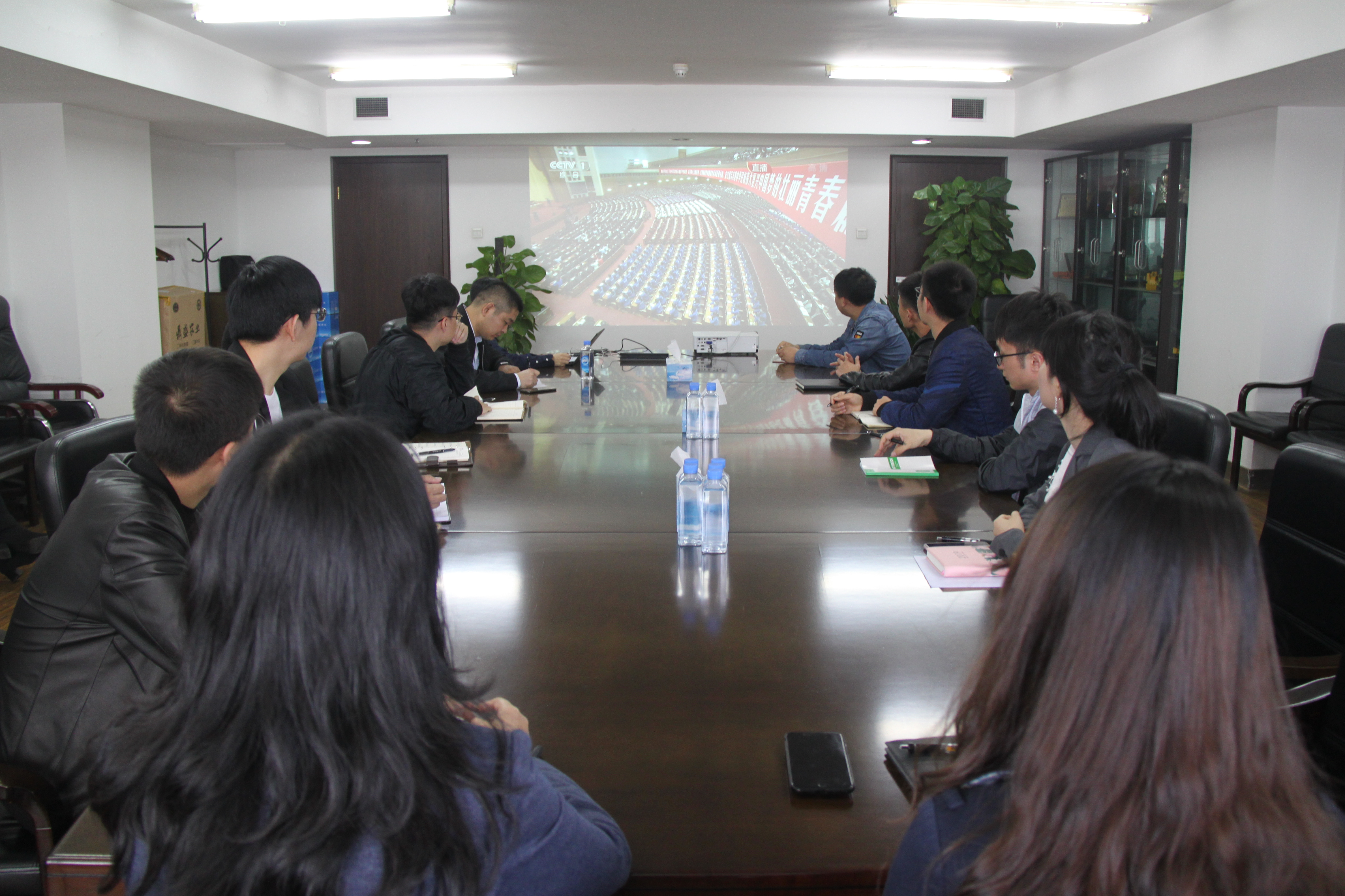 纪念五四运动100周年大会将于2019年4月30日上午10:30在人民大会堂举行,根据上级团委有关工作要求,开发公司团委于2019年4月30日上午10:20组织开发公司本部及在京所属企业团员青年和团干部共计20人在中煤大厦(蒋宅口)405会议室集中收看了纪念五四运动100周年大会现场直播,并认真学习了习近平总书记讲话精神。