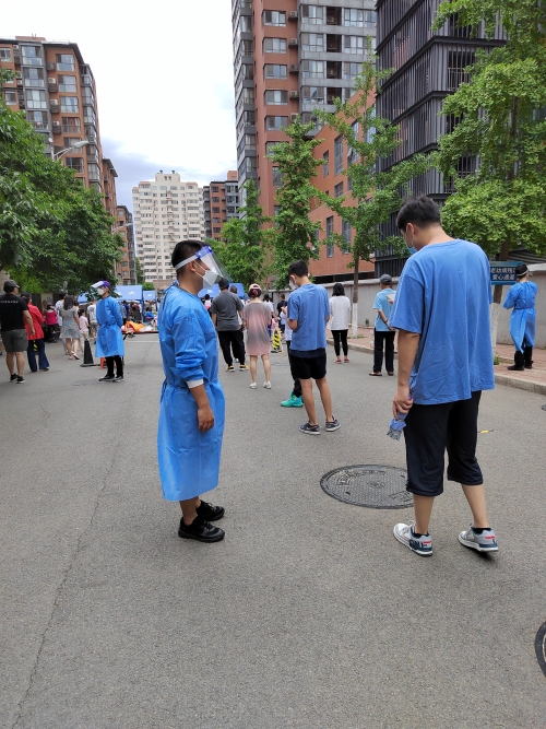 这些话他一天就要重复上百遍。他耐心的解答居民提出的各种疑惑,安抚大家的恐慌情绪,帮助老人使用手机扫码,维持现场秩序,引导群众顺利完成核酸采样。为了节约物资,不浪费防护服,上岗前他不敢喝水,宁可一直饿着肚子也要尽最大可能保证所有的居民全部做完核酸。