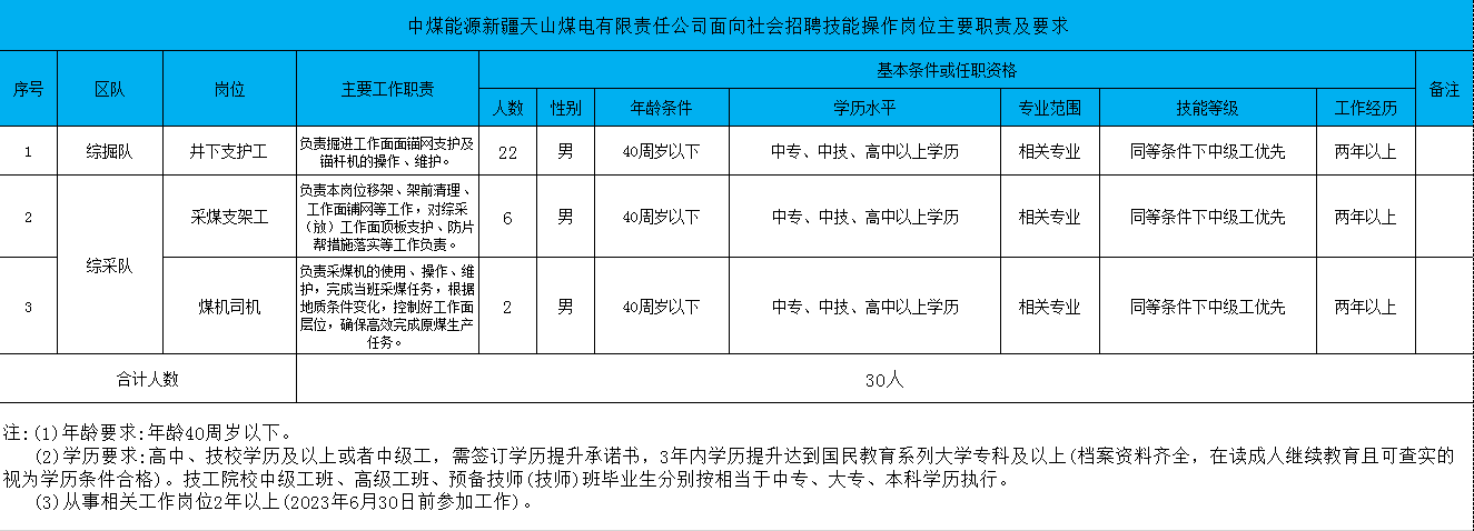 6.曾经在中煤公司或天山公司工作,但因个人违规违纪等被解除劳动合同的人员不得报名应聘。