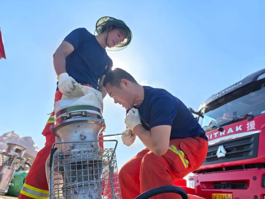 从河南到湖南,再到内蒙古,作为第三次跨省执行任务的“老兵”,中煤榆林队不仅具备丰富的抢险救援经验,更深知高效救援离不开科学规范的流程。他们坚持标准化作业,水带铺设横平竖直,接口衔接严丝合缝,设备布局科学规范,这些近乎苛刻的细节,都是与洪水抢时间、为生命护航的过程中总结出的最快最稳的方式,早已从日常备战训练中固化为每一次出险的工作标准,使他们成为多支救援队伍信赖的“标杆样板”,甚至吸引同行现场学习。
