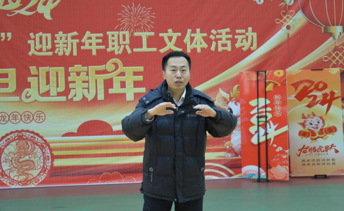 12月27日,公司在体育馆举办“乘势而上 聚力前行”迎新年职工文体活动,王鹏飞出席活动开幕式,并宣布比赛开始。