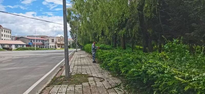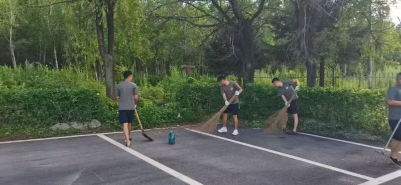行动中,在中心负责人的统一部署下,中心两直属队及科室人员“齐参与、共发力”充分发挥了团结协作的精神,以“高标准、严要求”的工作作风积极投入到环境整治的各项任务中。一部分指战员携带扫帚、铲子等工具,对营区外围马路边、林带里开展全面“检查”,将隐匿在草丛中、小树里的废弃物一一清理,并清除卫生死角顽固污渍;一部分指战员针对杂草丛生、树木杂乱区域,利用工具对杂草进行全面清理,并对榆树墙及枯树进行修剪、修整。