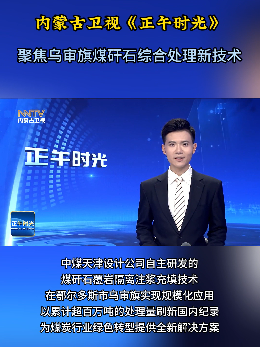 中煤天津设计公司新型覆岩隔离注浆充填技术受到内蒙古卫视的关注报道