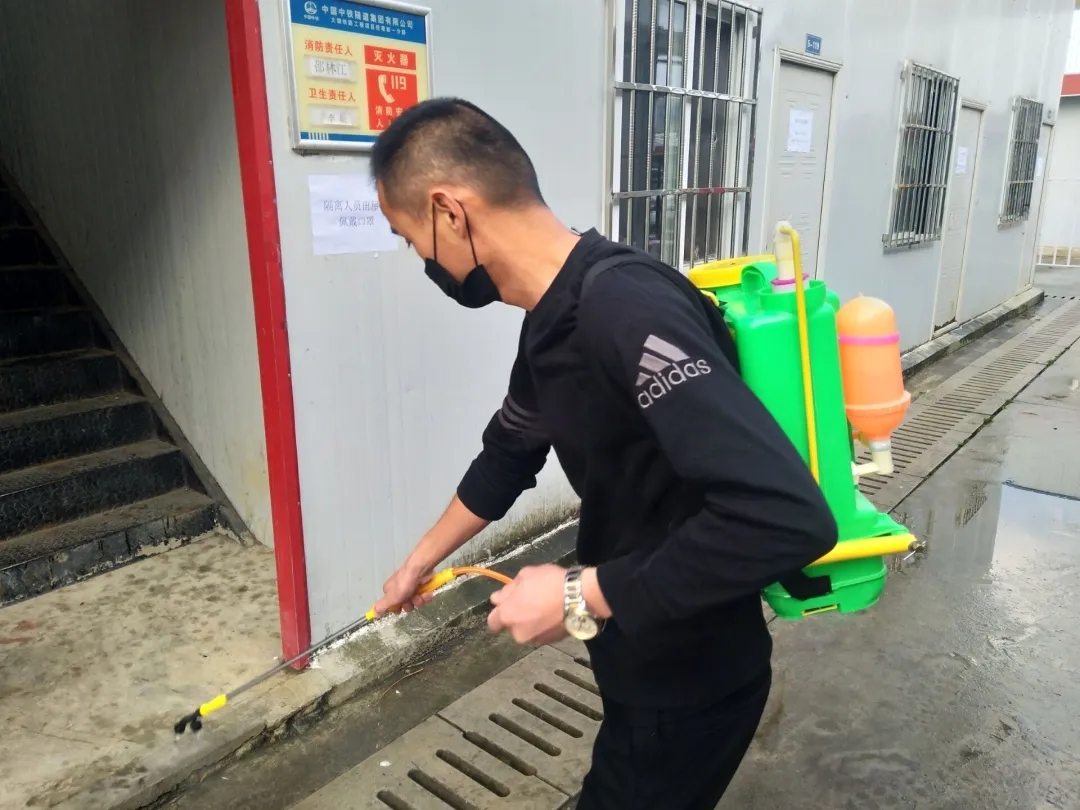 在五处,新庄项目部青年志愿者对办公区、生活区进行卫生清理、场地消毒,配合值班人员进行体温监测,在项目部工作群分享防疫知识,为早日战胜疫情、恢复正常生产秩序贡献青年力量。