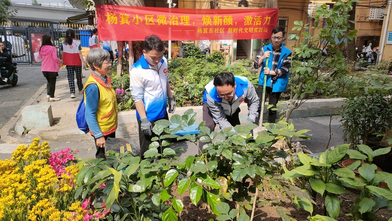活动当天,志愿服务队统一着装,携带工具准时到达社区绿化区域。在社区工作人员指导下,队员们分工协作,挥锹铲土、扶苗浇水,以饱满的热情投入植树工作。经过数小时辛勤劳动,新栽树苗在社区"安家落户",为社区增添绿色生机。