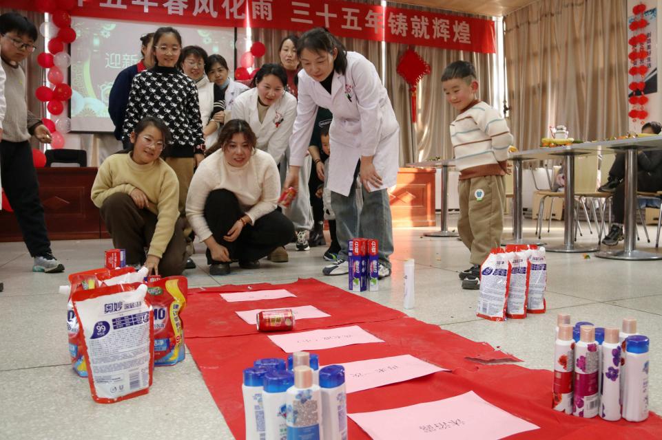 新年伊始,万象更新。1月22日,综合门诊部组织开展迎新春系列活动。活动现场,处处洋溢着浓浓的年味,随着欢快的音乐,活动正式拉开帷幕。“滚滚乐”游戏区域,热闹非凡,职工带着孩子们排着队,个个跃跃欲试。他们小心翼翼地操控着滚动的道具,目光紧紧追随道具的轨迹,丝毫不敢懈怠。每当道具顺利到达所设奖品区域,现场便爆发出热烈的欢呼声和掌声;此外,听指令、单手翻纸杯、抢凳子、掼蛋等游戏也各具特色,大人小孩踊跃参与,沉浸在节日的欢乐之中。