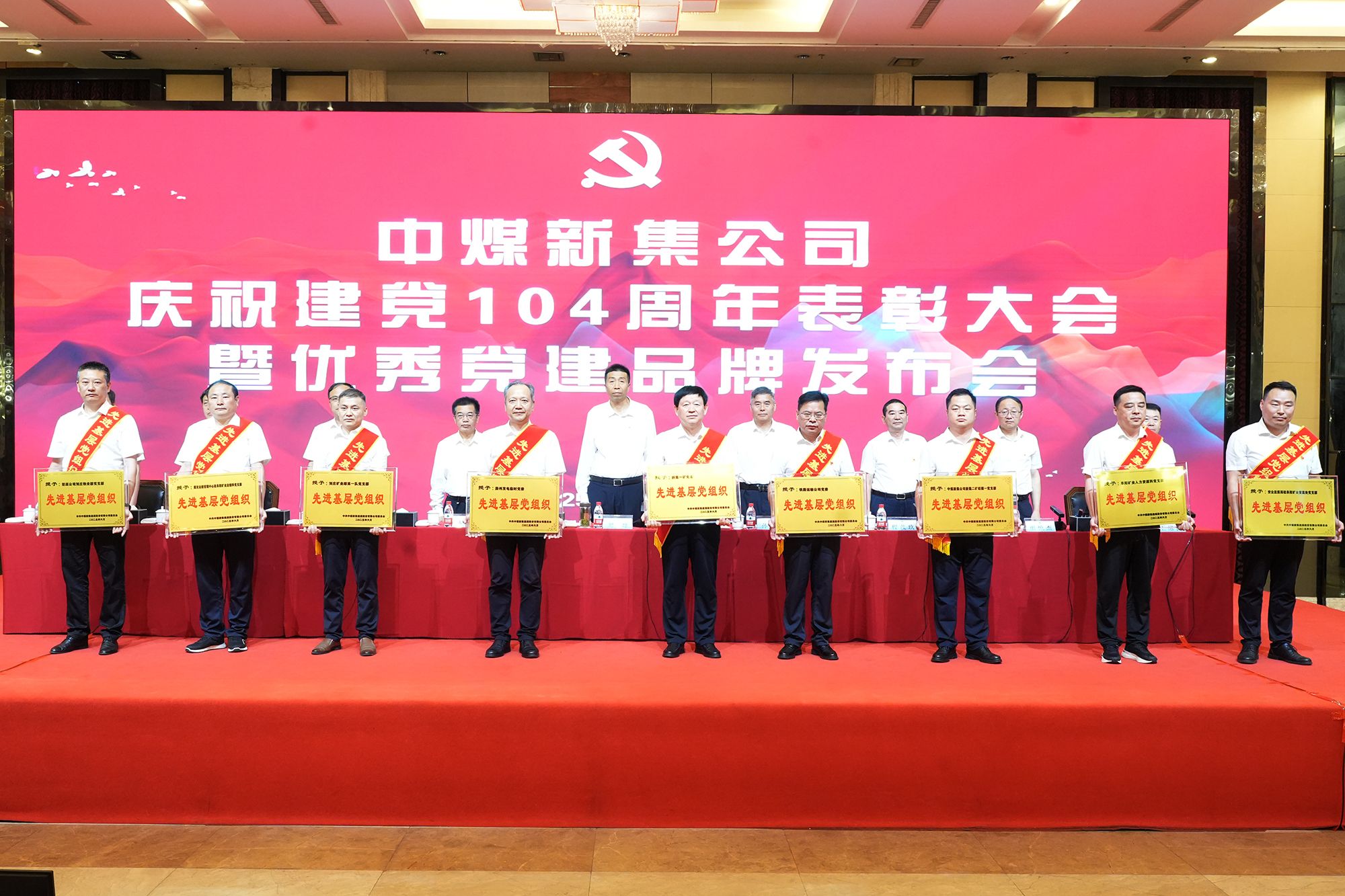 6月30日,公司在新集宾馆多功能厅召开庆祝建党104周年表彰大会暨优秀党建品牌发布会。公司党委书记、董事长刘峰在会上作总结讲话并上学习教育专题党课,党委副书记、总经理孙凯主持会议,党委委员、工会主席孙成友宣读表彰决定,公司领导程茂玖、万磊、渠慎杰、张全平、王绪民、张学锁出席会议并为先进党组织及先进个人代表颁奖。