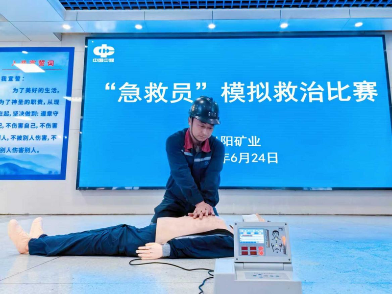 “急救员”模拟救治比赛。该矿注重“急救员”专业素质和应急救援能力提升,聘用“急救员”159名,定期开展理论培训和实操演练。