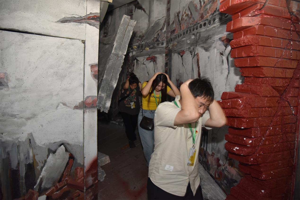 在讲解员的引导下,党员干部参观了地震灾害、消防安全、卫生健康、交通安全、人防工程等展区,并体验了地震逃生、烟雾逃生等模拟场景。通过聆听讲解和互动体验的形式,进一步提升了党员干部对于防震减灾相关知识的了解。