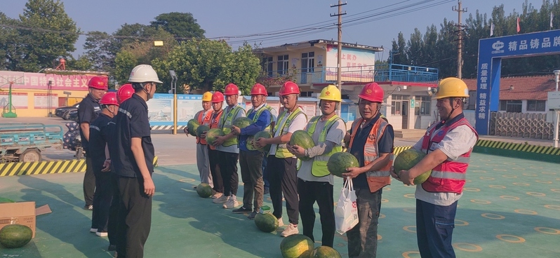 此次活动由项目部统一组织,针对近期持续高温天气带来的不利影响,精心准备了藿香正气水、绿豆、白糖、西瓜等防暑降温物资,并在安全例会上集中发放至各班组手中。项目负责人表示:“一线工人是项目建设的中坚力量,在高温环境下更要关心他们的身体健康和劳动安全。”
