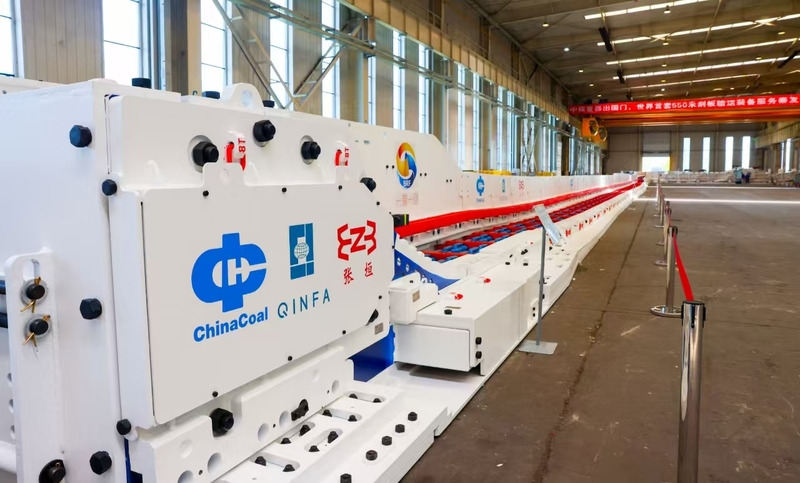 5月8日,中煤张煤机公司自主研发的出口印尼世界首套550米工作面刮板输送成套装备成功通过出厂评议,即将验收交付。该成套设备的成功研制,进一步强化了该公司在行业的技术领先地位。与会专家团队一致认为:整套设备配套合理、技术先进、性能卓越,具有可靠性高、智能化、低能耗等特点,满足中厚煤层550m超长工作面开采需求,达到了国际领先水平。