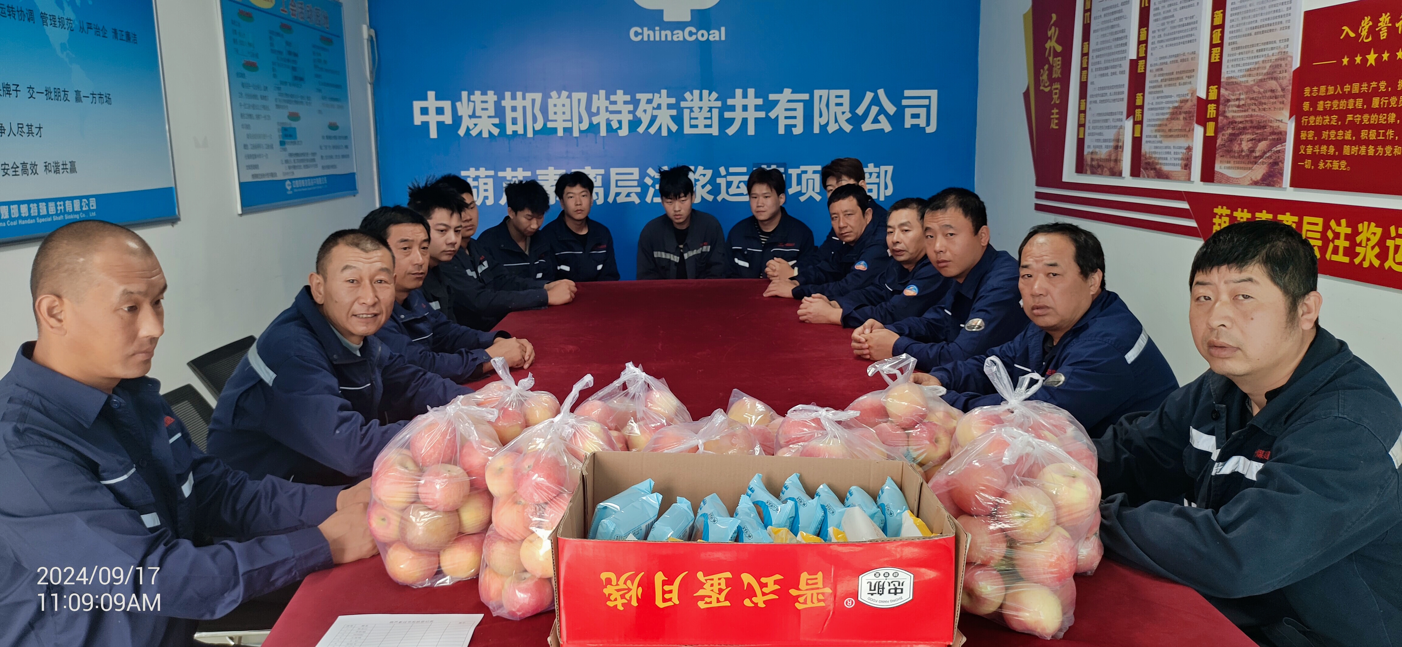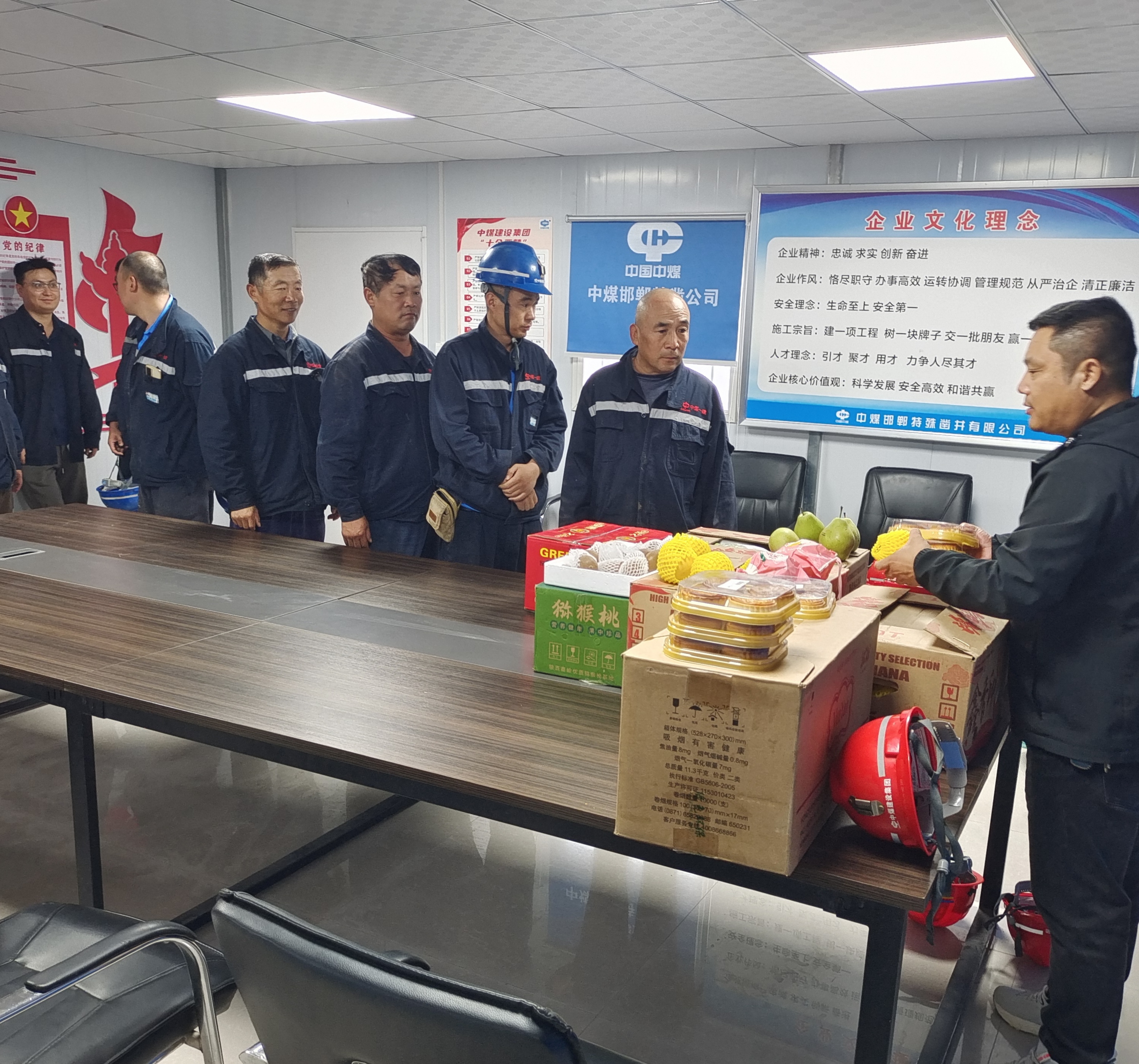 中秋慰问送关爱。为了让中秋不能回家团圆的职工度过一个温馨、祥和的节日,特凿公司工会下拨专项资金,为节日期间仍奋斗在一线的职工购买甜美月饼、可口水果等,项目部值班领导在送上慰问品的同时,致以节日的问候和祝福,由衷感谢每一位在此团圆佳节坚守在岗位的职工,嘱托大家提高安全意识,严把安全生产关。一声声祝福,一句句嘱托,不仅饱含着“娘家人”对一线职工的温暖亲情,更充分体现了企业对职工的深切关怀。