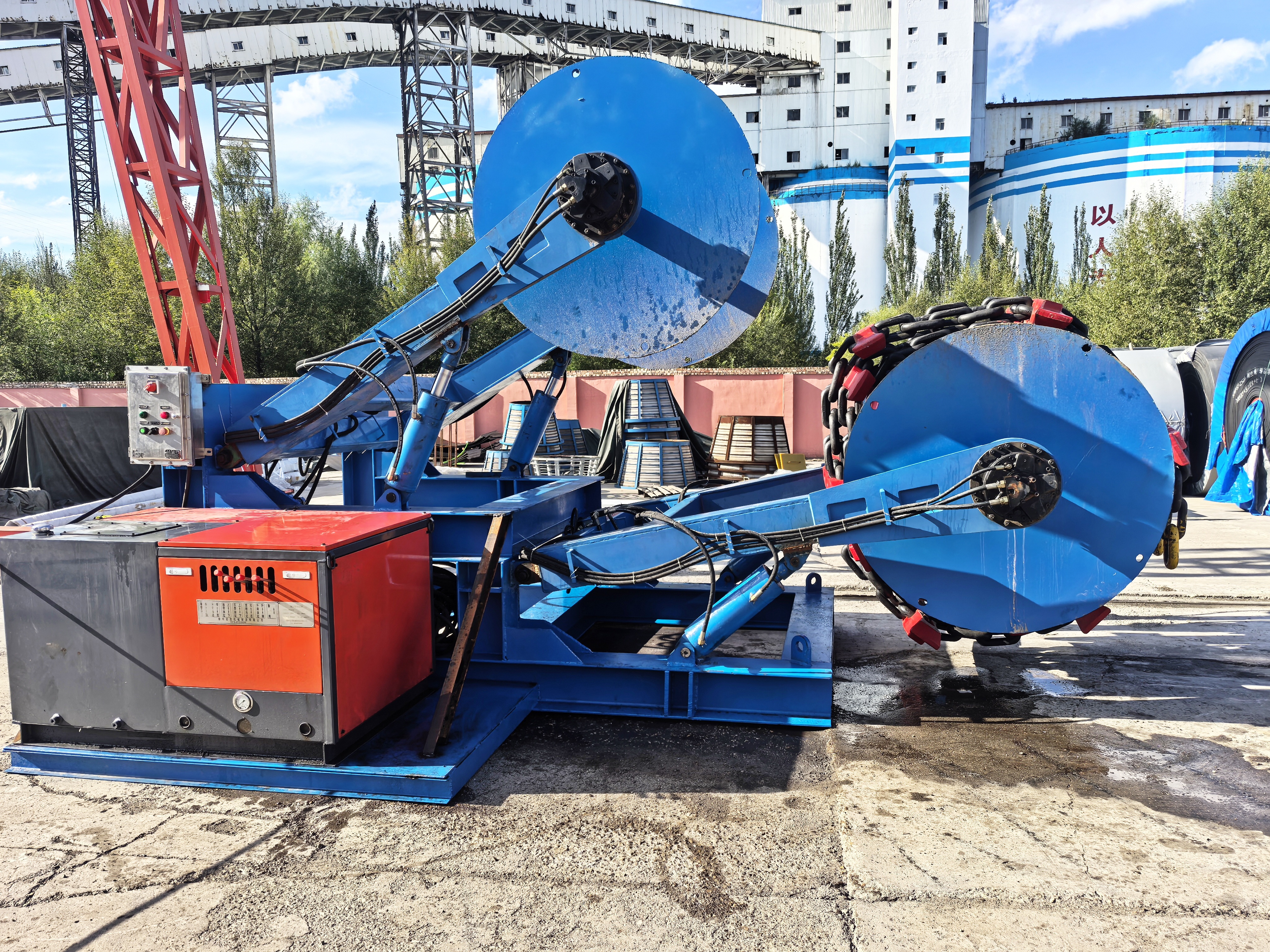 据了解,该厂三套SGZ1200/1000型刮板机运输系统,单条链条长达75米、重约3.5吨,每8个月需更换一次。以往更换作业需租用100吨双钩吊车,因现场空间狭小、吊装高度跨度大,存在较大安全风险。为彻底解决这一难题,该厂从设计图纸入手,系统采购12000N液压拉马、225KW液压站等核心部件,成功研制液压自动卷链机。该设备具有三大创新点:一是采用350×350工字钢主体结构并增加配重,确保基础稳固;二是改造卷链机构横梁,加装接头固定环,解决链条错位问题,实现收放链同步;三是加装挡链板和液压油缸控制系统,既为链条运行"划定轨道",又能根据卷链直径灵活调节高度,有效防止链条摆动、松弛或拖地碰撞。